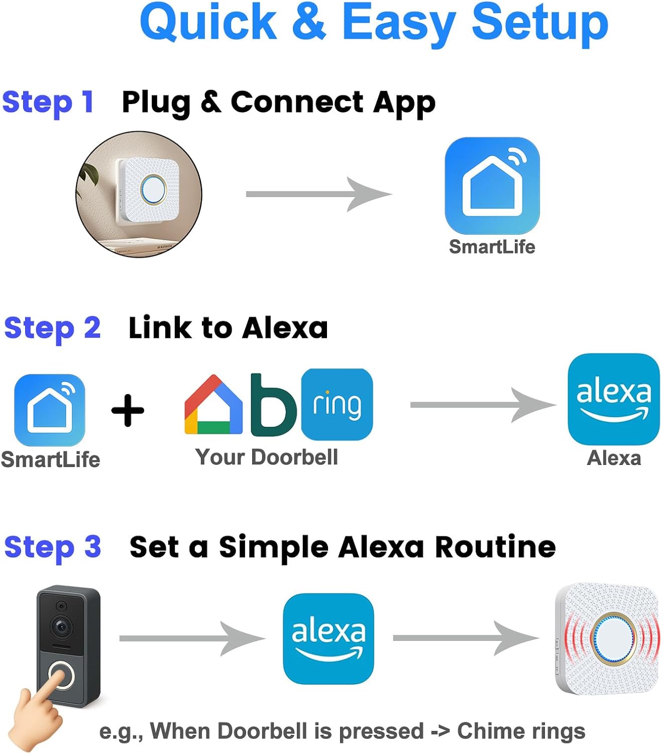 Smart Wireless Doorbell Chime, Compatible with Google Nest & Blink & Ring Doorbell, No Wiring Needed, Whole-Home Range, 5 Volumes, 32 Chimes, Easy APP Setup